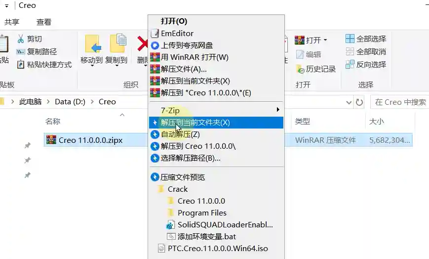 16、返回Crack文件夹复制Creo11.0.0.0文件夹