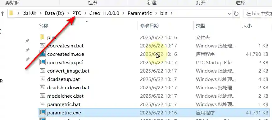 4、粘贴之后依次打开C:\Program Files\PTC文件夹选中FillLicense.bat以管理员运行