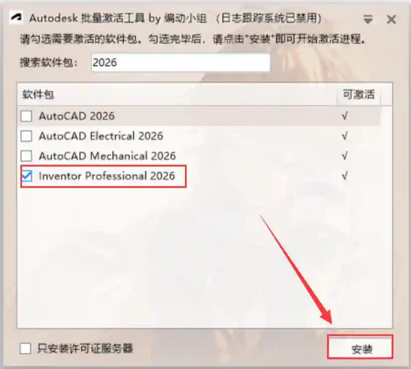 11、搜索2026 勾选对应软件点击安装