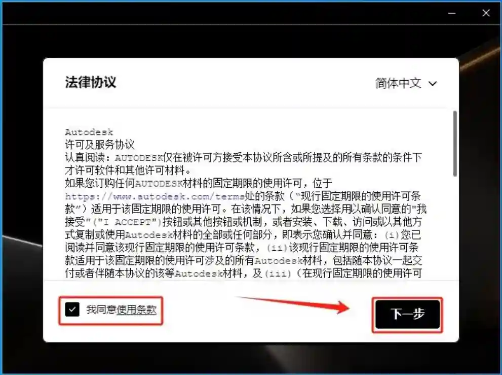 3、勾选同意并下一步