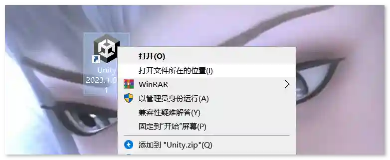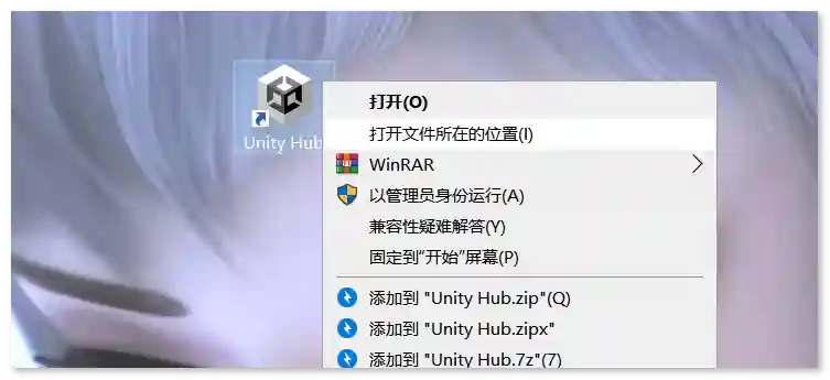16、鼠标右击桌面【Hnity Hub】选择【打开文件所在的位置】