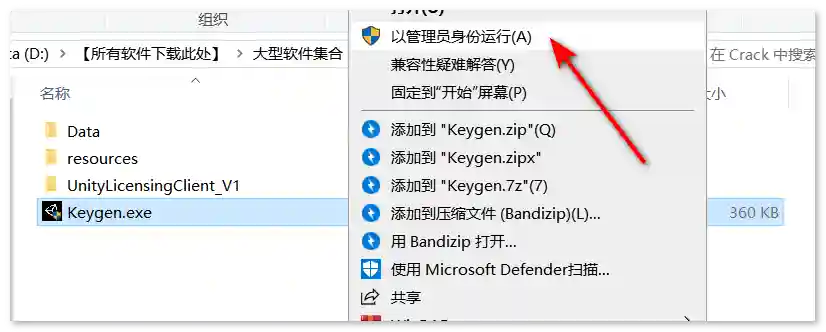 29、返回Crack文件夹,右键Keygen以管理员运行