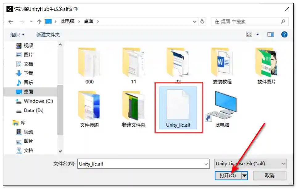 31、选择刚才保存的【Unity_lic】文件,点击【打开】