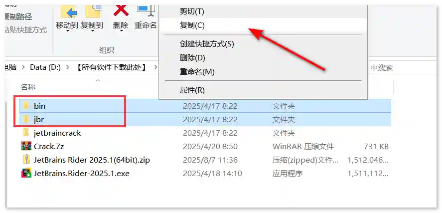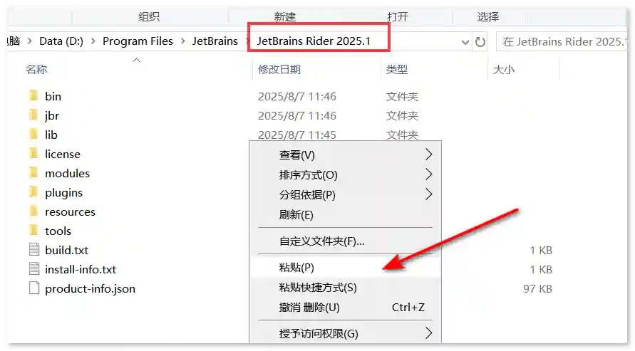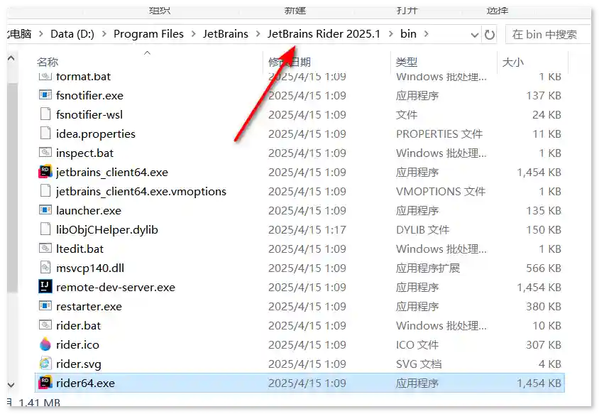 14点击路径地址栏中的【JetBrains Rider 2025.1】