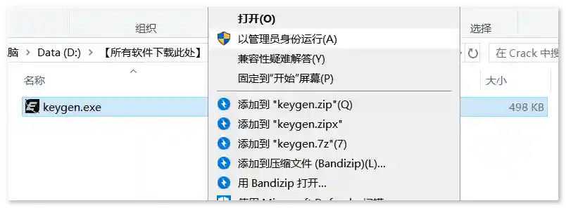 11、打开Crack文件夹右键以管理员运行Keygen