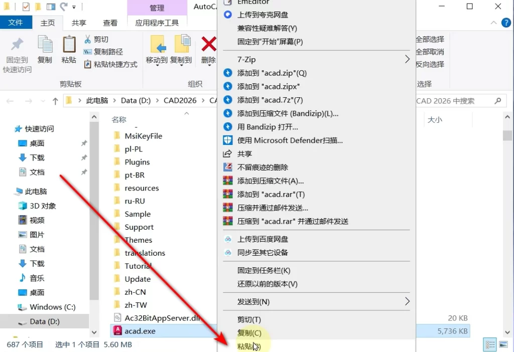 10、右键 AutoCAD 图标 → 打开文件所在位置
