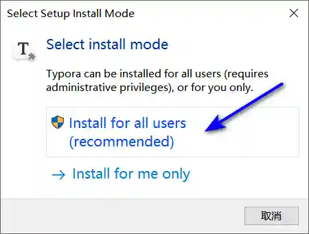 3、点击Install for all users……