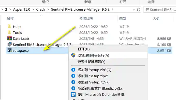 2、打开Sentinel RMS License Manager 9.6.2文件夹,右键Setup.exe以管理员运行