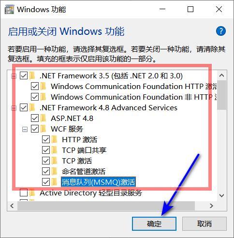 安装前准备安装前需要安装有.NET Framework 3.5 或者更新的4.0 版本,如果没有安装请先安装 ,可以通过“控制面板-程序-启用或关闭Windows功能”,打开面板,勾选net 3.5和net 4.8,点击确定