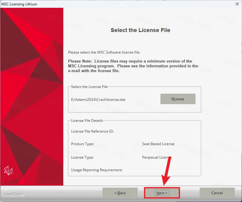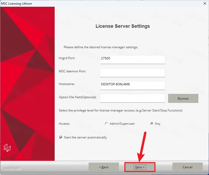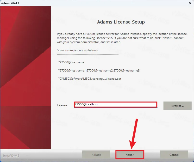 22. 在“License”框内输入 27500@localhost,点击【Next】