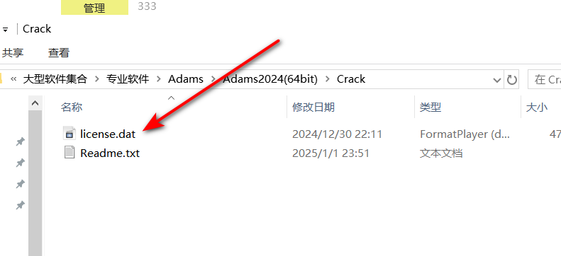 07. 打开 Crack 文件夹,找到 license.dat 并点击打开