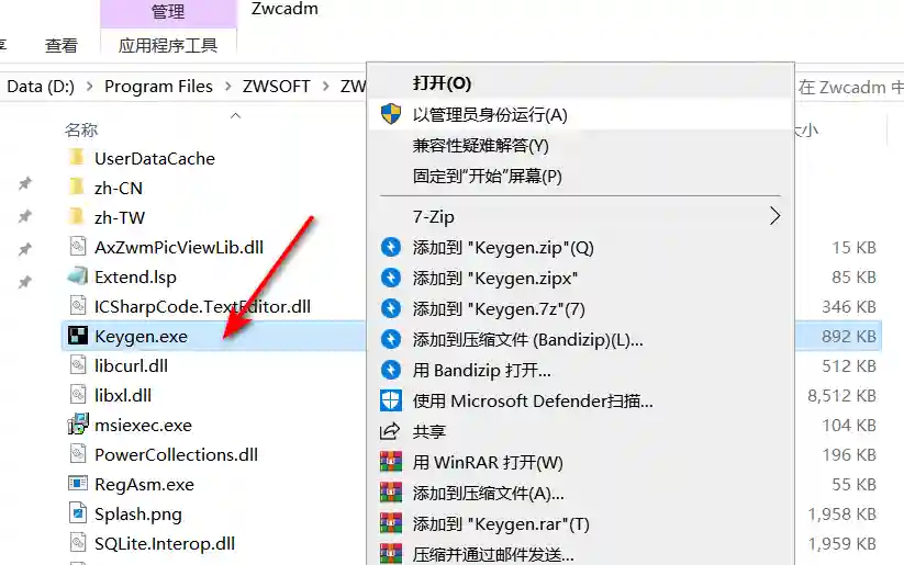 11、右键 Keygen.exe → 以管理员身份运行。