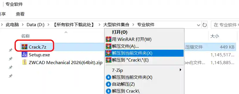 7、解压 Crack 文件夹。
