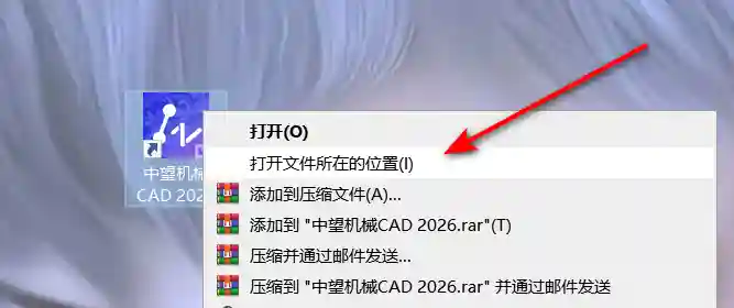 9、右键中望CAD图标 → 打开文件所在位置。