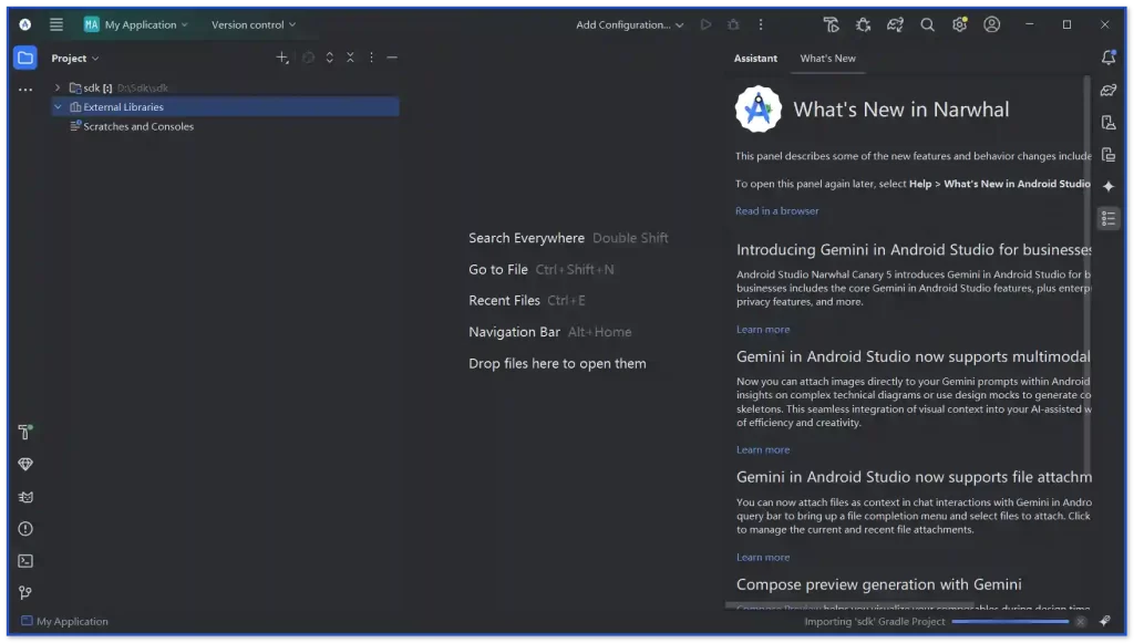 Android Studio 2025 是 Google 官方推出的最新一代 Android 应用开发集成环境(IDE),代号版本为 Narwhal。它专为 Android 平台开发提供全面支持,强化了沉浸式 UI 构建体验与本地性能调试能力。