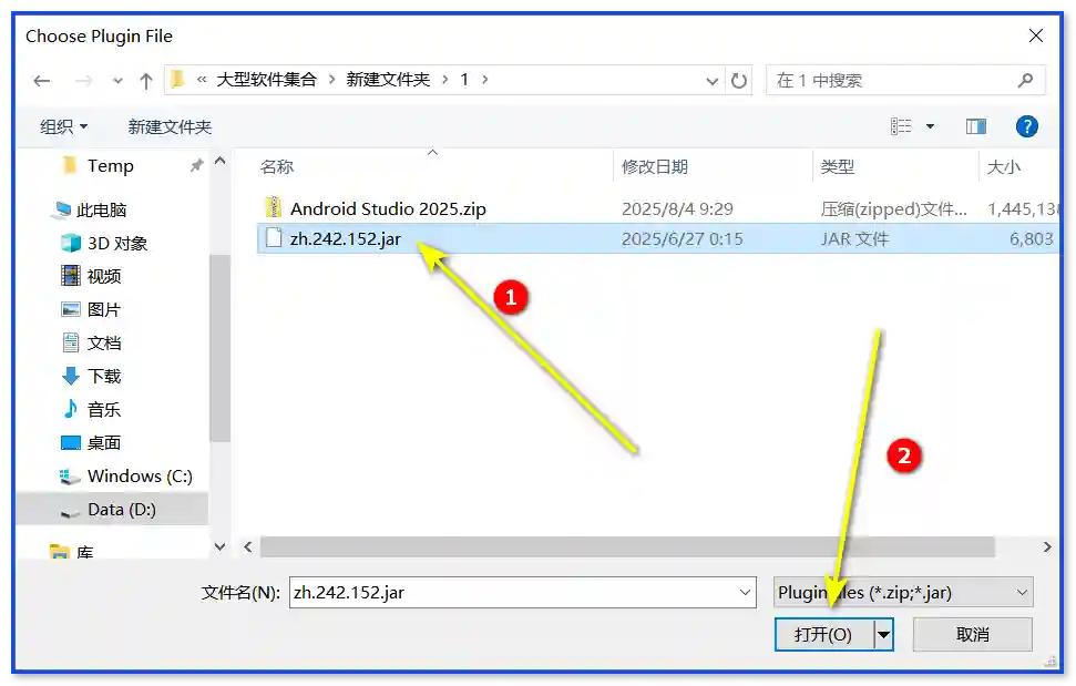 3、找到解压文件中的 zh.242.152.jar → 点击 “打开”