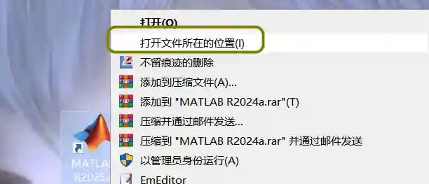 18、右键 MATLAB 快捷方式,选择“打开文件所在位置”