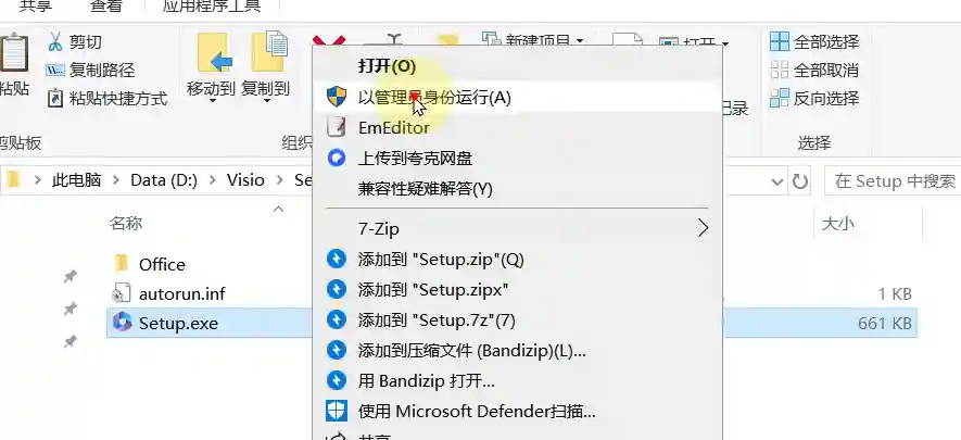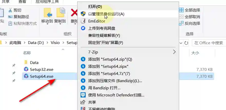 3、电脑是32的就装32版本,是64的就装64.点击其中一个setup.exe右键以管理员运行