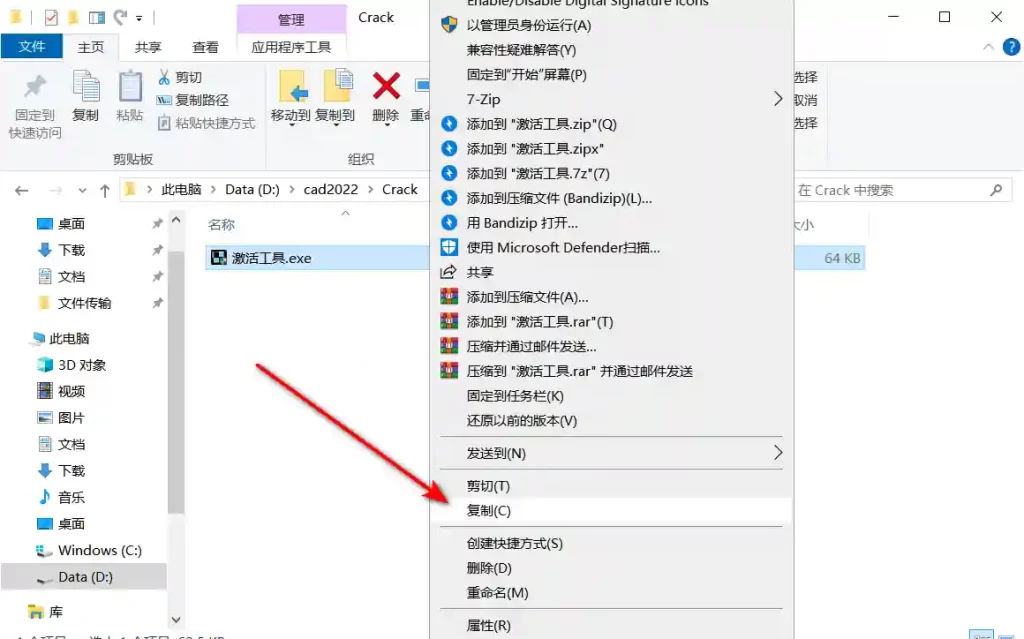 10、打开 crack 文件夹并复制激活工具