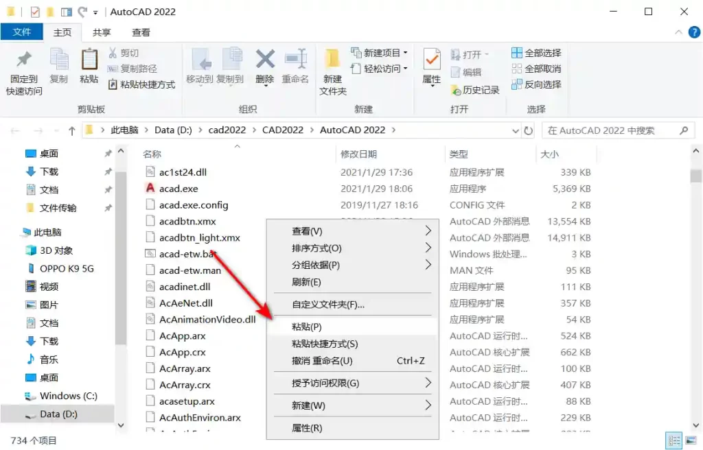 11、右键打开 AutoCAD 2022 安装目录所在位置
