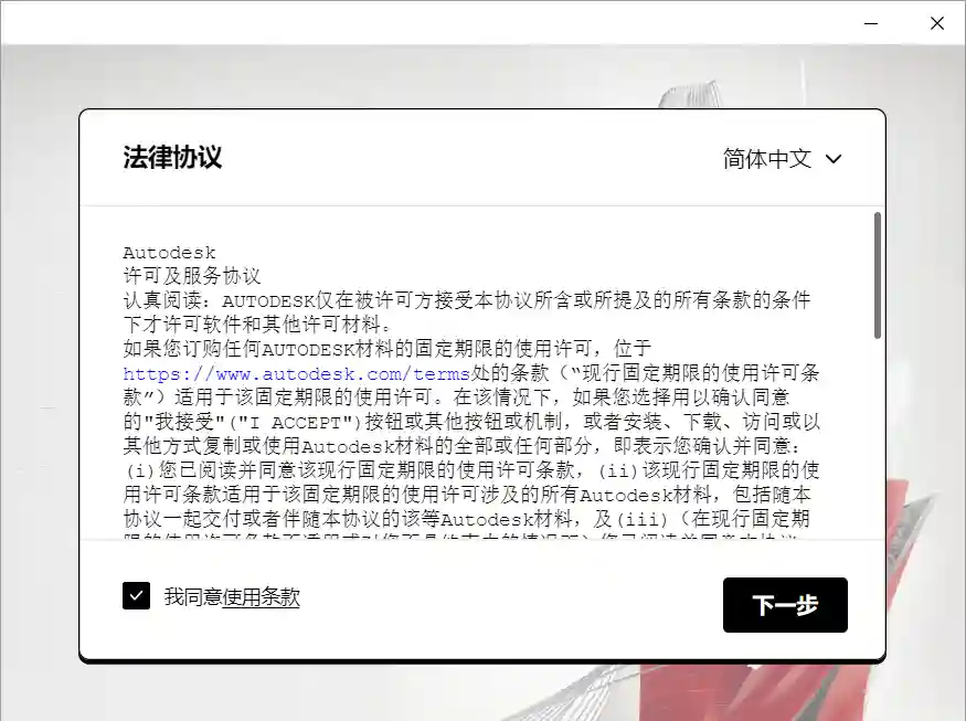 5、同意并点击下一步