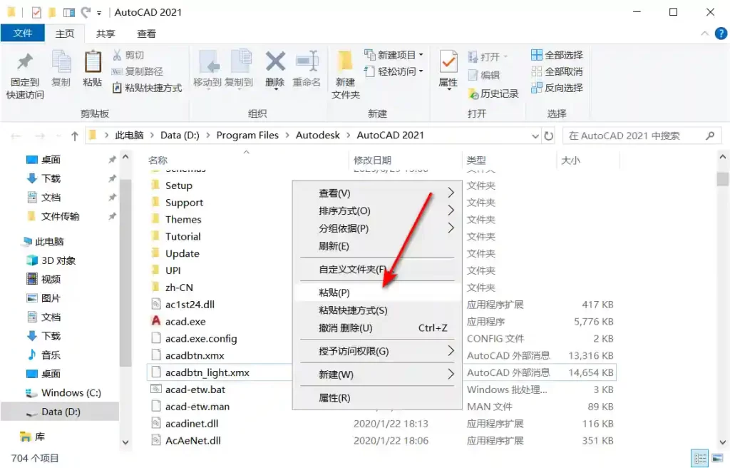 9、右键打开 AutoCAD 安装目录所在位置