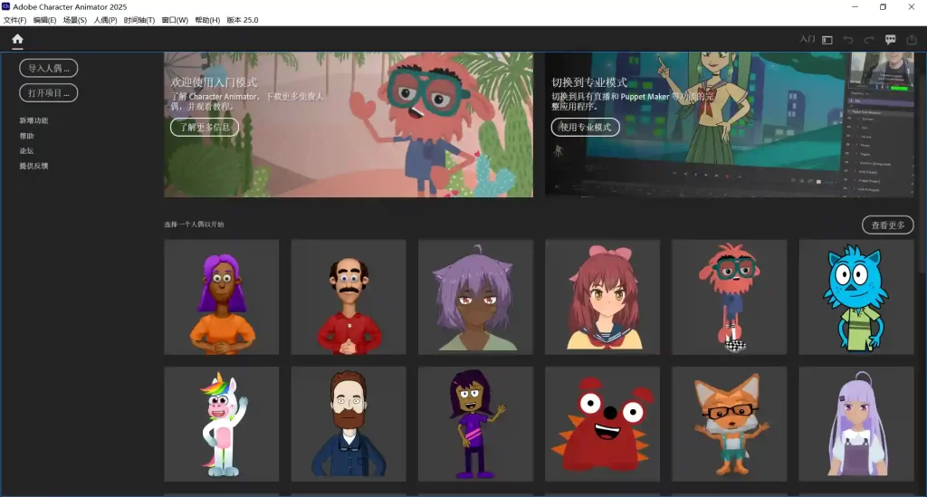 Adobe Character Animator 2025 是 Adobe Creative Cloud 套件中的一款专业级 实时角色动画软件,专为内容创作者、动画师、直播主播和教育工作者设计。它的核心优势在于:通过摄像头和麦克风实时捕捉用户的面部表情、声音和动作,并驱动 2D 角色进行同步动画表演